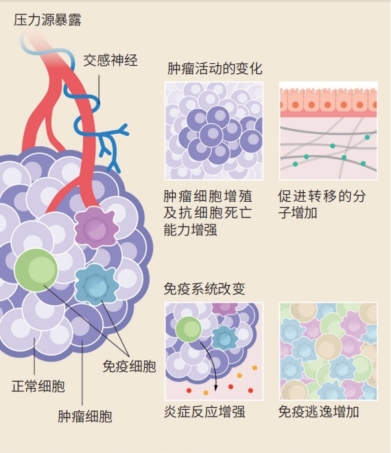 癌症患者可能会经历与疾病有关或无关的各种压力。越来越多的证据表明,这些因素可能会影响肿瘤的发展