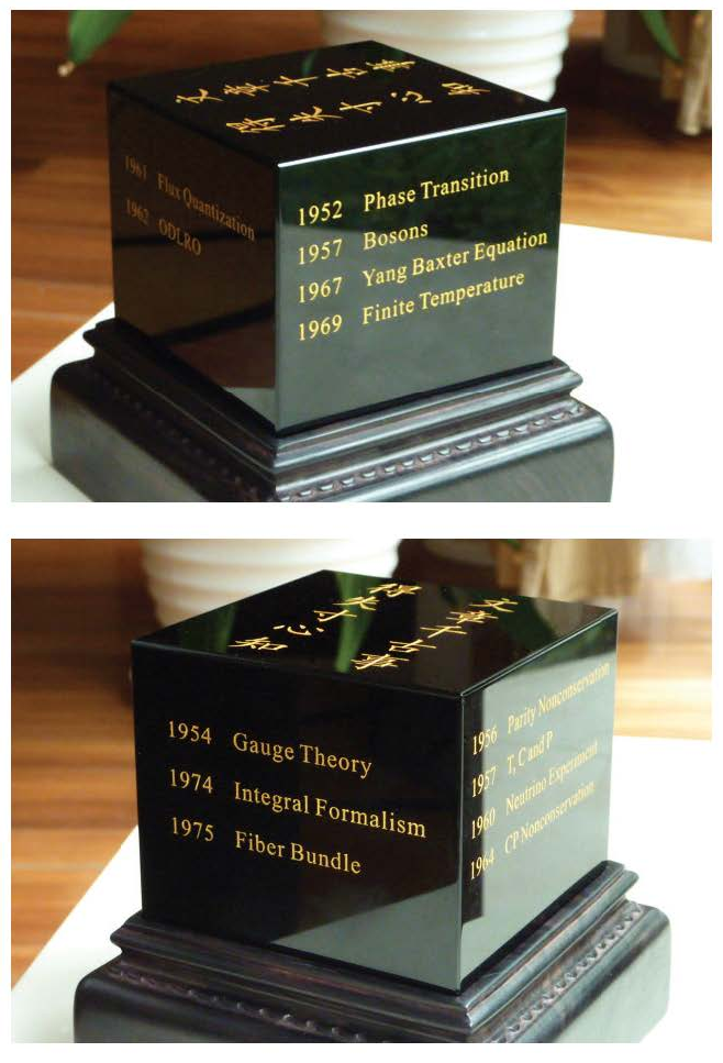 镌刻杨振宁13项重要物理学贡献的大理石长方体(2012年)