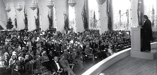 1621年6月4日,哥德堡经皇家特许开埠,现为瑞典第二大城市。1923年5—9月,为庆祝哥德堡建城300周年(受第一次世界大战拖累,因市政府财政出现困难而推迟两年)举办了大型嘉年华博览会。5月8日,为庆祝活动兴建的利瑟贝里主题游乐园建成开园。7月9—14日,斯堪的纳维亚自然科学家大会第17次会议在游乐园会议大厅(1923年5月31日建成开张,1973年10月9日晚毁于一场火灾)举行。7月11日(原定7月9日的演讲会因爱因斯坦记错日期而推迟两天),爱因斯坦在会议大厅用德语发表了约1个小时的诺贝尔演讲“相对论的基本思想和问题”。饶有意趣的是,爱因斯坦在诺贝尔演讲中根本就没有提及自己的获奖成就“光电效应定律”。演讲会由阿伦尼乌斯主持,现场听众约1000人,瑞典国王古斯塔夫五世和诺奖得主尼尔斯 · 达伦(Nils Gustaf Dalén,1912PH)亲临现场。至此,前后历时十多年(1910—1923年)的爱因斯坦曲折的诺奖之路才终于落下帷幕。人们后来普遍认为,诺奖颁给爱因斯坦不是爱因斯坦的荣耀而是诺奖的荣耀。