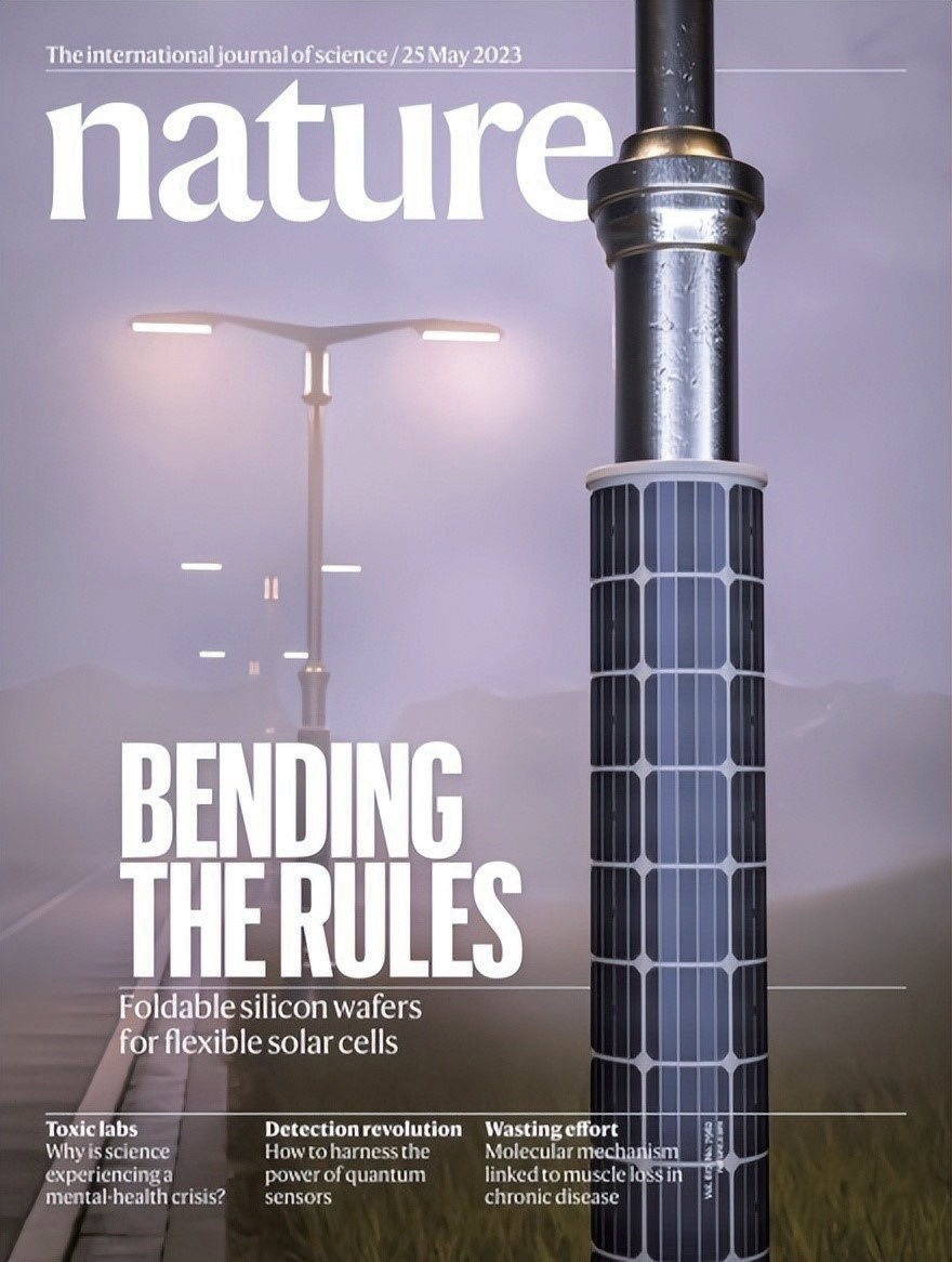 技术突破的背后是问世近70年的硅电池这一“古老”的产品搭上了“柔性”技术的快车,其价值在于使传统的刚脆、易断的单晶硅太阳电池变身为高效、轻质、大面积、低成本的柔性单晶硅太阳电池成为可能。这一底层技术的突破使得太阳电池的市场发展空间大幅扩张,其应用场景包括地面大规模光伏电站、分布式光伏、柔性电子、移动通信、建筑、航空航天等领域。刘文柱对此有强烈的直觉和自信:面对这样一种牵引未来关键产业的底层技术突破,《自然》审稿人不会“看走眼”。《自然》编辑在后面的沟通中要作者提供可用于封面的图片,刘文柱其实没有太过激动,或许在他看来一切都是水到渠成。