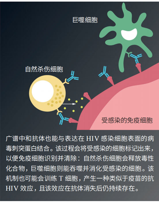 目前尚不清楚病毒载量何时会回升,因此研究人员在称处于缓解期的参与者为“功能性治愈”这件事上持谨慎态度。然而,这些抗体似乎明显在“诱导”免疫系统对抗病毒。它们附着在受感染的细胞上,向免疫细胞发出信号,引导其前来清除感染细胞。